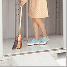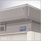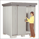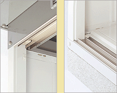引き分け戸タイプには開閉時の消音などの目的のために鴨居部分にイナバ独自のラッチを採用. | 雨水浸入防止や換気効果などに配慮した独自設計の換気ガラリです. | 平らで丈夫な床板は,掃除や物の出し入れが簡単.しかも, 5880N/m2(600kgf/m2) の重量に耐える設計です. |