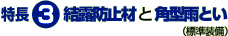| 切妻屋根の特長を生かした重厚なデザイン.屋根回り,梁,桁,屋根パネルなどには高級な素材のガルファン材(溶融亜鉛−5%アルミニウム合金めっき鋼板)を採用しているため耐久性にも優れています.また,梁の中央部には換気ガラリが取り付けてあり,さらに機能性アップ. | 乙種防火戸対応型(板厚0.8o)の丈夫な扉(サイド扉方式).レールは滑りや耐久性に優れたアルミの押し出し材を採用しております.鍵がなくても仮ロックできるイナバ独自のカマ錠採用.学校など公共向けとして,南京錠やナンバー錠が使用できるよう掛金(オプション)が用意されております. | 屋根パネルの裏面には化粧シート付結露防止材(発泡ポリエチレン厚さ5mm)が貼り付けてあります. ○注 写真は結露防止材を一部省いてあります. 掃除がしやすい本格的な雨といが標準で付いております. ○注 たてといは角型50を採用. |