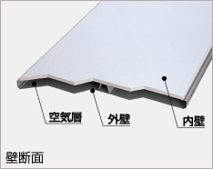 | 天井材は硬質発泡ポリウレタンフォーム(厚さ20o)の表面を,クロス柄のシートで化粧した断熱効果の高い素材を新採用. 内壁は断熱効果の高い準不燃材料「認定番号QM-9817」の素材=ロックウール材(厚さ15o)を使用,表面は新採用のクロス柄オレフィンシートで化粧してあります. ※多雪地や寒冷地等の地域では使用目的や用途によってオプションの断熱材や市販品の断熱材との併用が必要となります.(詳しくはメールにてご相談ください) |