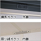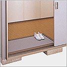 | 天井面に集まった空気は回り縁ガラリ,換気ガラリを通過して外部へ排出.内装材付の2重構造で収納もより安心です. | 耐水合板(低ホルマリン対応-厚さ12mm)に木目柄のシートを貼り付けた丈夫な床材使用(扉用土間マットはオプション品です) | 断熱効果向上や冷え込み防止用として,寒冷地のみならず一般地域にも有効にご利用ください.施工後の取り付けは出来ませんのでご注意ください.(同時発注用オプション品) | 掃除がしやすい本格的な雨といを標準装備しています. (たてといは角型50採用) |
