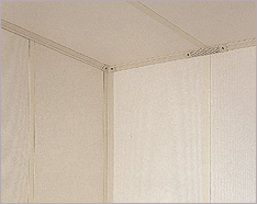 | 天井材は硬質発泡ポリウレタンフォーム(厚さ20mm)の表面を,クロス柄のシートで化粧した断熱効果の高い素材を新採用. 内壁は断熱効果の高い準不燃材料「認定番号QM-9817」の素材=ロックウール材(厚さ15mm)を使用,表面は新採用のクロス柄オレフィンシートで化粧してあります. ※多雪地や寒冷地等の地域はオプションの断熱材や市販品の断熱材との併用が必要となります.(詳しくはメールにてご相談ください) |