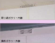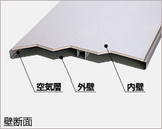 居住性を考えた新換気方式を採用.天井面に集まった汚れた空気は回り縁ガラリ,換気ガラリを通って効率よく外部へ.また,結露防止などのために屋根裏換気をよくする配慮が施してあります. | 雨音静かな屋根パネル 雷雨や台風時の気になる雨音が室内や外部に響きにくい制振鋼板製屋根パネル採用のため事務作業や勉強もより充実します. 結露防止 暖房器具のご利用などで発生しがちな屋根裏の“結露”も標準装備の結露防止材(発泡ポリエチレン/厚さ5mm)でより安心です. |