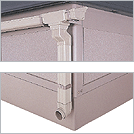 | 床からの底冷え防止などに断熱効果があります.また,結露防止や冷・暖房効率向上のために寒冷地のみならず一般地域にもお勧めします.施工後の取り付けは出来ませんのでご注意ください.(同時発注用オプション品) | 耐水合板(低ホルマリン-厚さ12mm)に木目柄のシートを貼り付けた丈夫な床材使用。オプション品の(A)カーペット (B)土間マット(枠付)などを用意しています. | 高水準の水密,気密性をほこるアルミ枠製の高級フラッシュドア.ピッキング対応のダブルロック錠(室内側にも2つの内錠),把手はレバーハンドル採用.さらに,本格的ドアクローザー標準装備で安全性と防犯性を追求しました. ※標準仕様は外観右開きです.左開きの場合はご指定ください. (詳しくはメールにてご相談ください) |